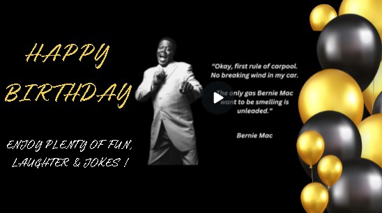 Give laughter to that special person with this Birthday eCard with a joke from one of the legends of comedy, Bernie Mac. Laughter is the ultimate tonic in life, so sending your birthday wishes with comedy is the perfect way to celebrate that special day for a special person!