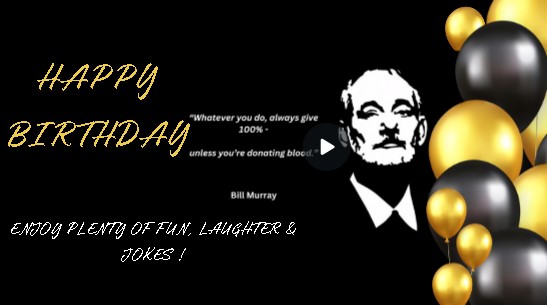 Give laughter to that special person with this Birthday eCard with a joke from one of the legends of comedy, Bill Murray. Laughter is the ultimate tonic in life, so sending your birthday wishes with comedy is the perfect way to celebrate that special day for a special person!