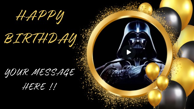 Simply provide your required message, and our team will personalise it to your card, downloadable from your FunVidi account. This  digital birthday eCard is perfect for Star Wars fans and adds a touch of the dark side to any birthday celebration.