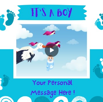 Celebrate the arrival of a baby boy with a charming digital eCard featuring a stork delivering the baby to a lively “Hip Hip Hooray” soundtrack. Add your own personal message to create a unique eCard that is a fun and heartfelt gift for parents of a new born baby.