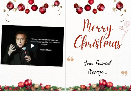 Send fun and laughter with this Christmas eCard featuring the Jackie Mason “Men Cheat” joke, a fun digital greeting for the Festive Season!
