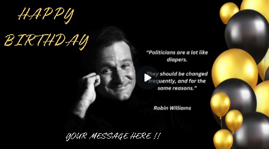 Give laughter to that special person with this Birthday eCard with a joke from one of the legends of comedy, Robin Williams. Laughter is the ultimate tonic in life, so sending your birthday wishes with comedy is the perfect way to celebrate that special day for a special person!