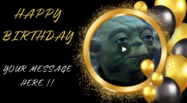 Why not send a Yoda personalised birthday eCard. A fantastic and imaginative birthday greeting with Yoda delivering your personalised birthday message in his own special way!